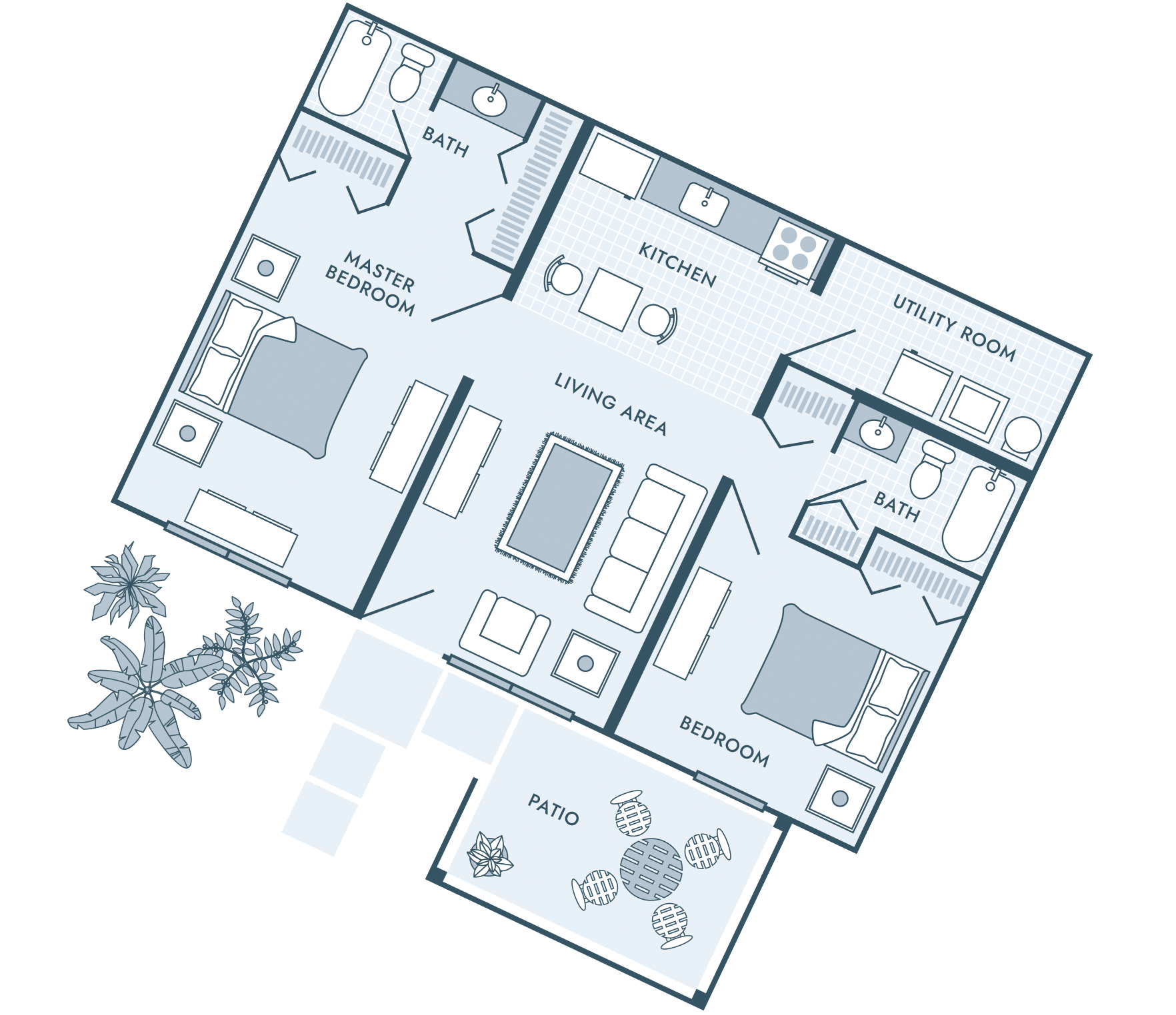 Our apartments feature open living areas, well-appointed kitchens, and plenty of storage space, including large utility rooms in every home. Private patios extend your living space outdoors, giving you a perfect spot for morning coffee or an evening wind-down.